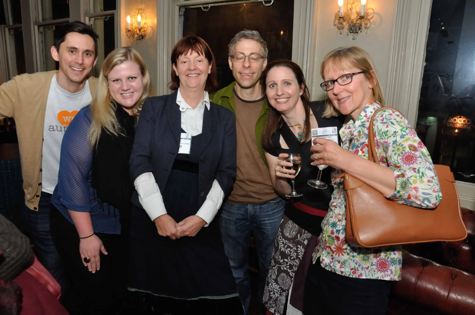 [l.to r.] Thom Kephart & Amanda Sullivan Wilson of Amazon, Orna Ross, Brian Felsen of Bookbaby, Joanna Penn and Karen Inglis, at the launch of Choosing A Self-Publishing Service