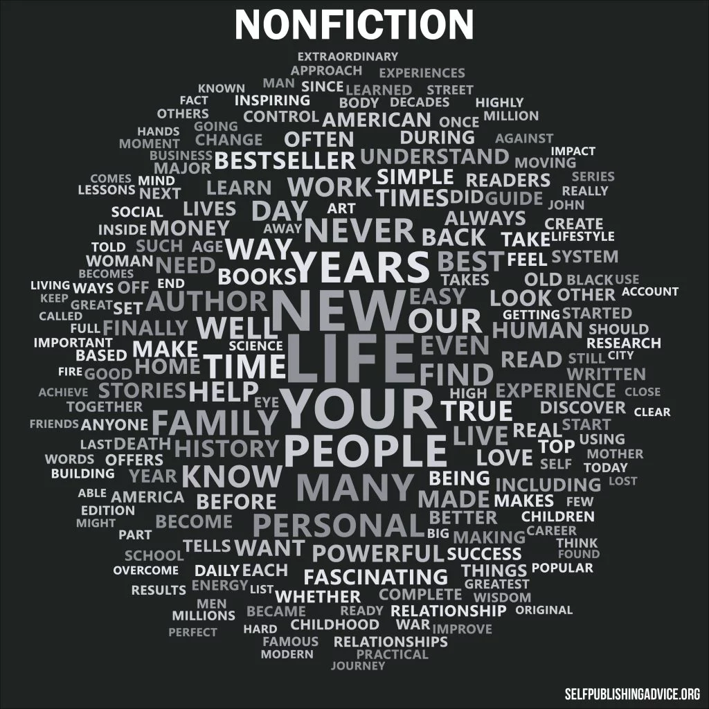 Nonfiction is a high-level category that encompasses disparate subjects ranging from Memoirs to Business to Medicine to Cookbooks. As a result, the most frequently used words come from a hodgepodge of genres, but we can still see a few interesting patterns in the descriptions.