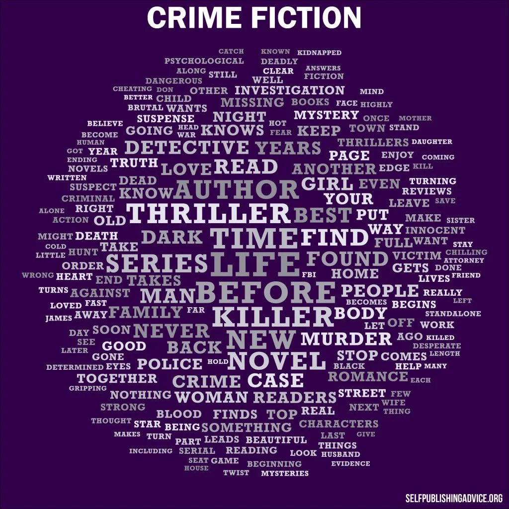 Other popular terms in Crime Fiction (more than 5% above other categories) include DARK, GIRL, MISSING, and BLOOD.