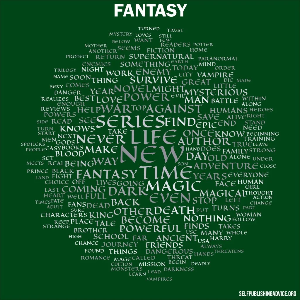 Frequently-used terms in Fantasy tend to be story-related, and often emphasize change, conflict, and struggle. Popular terms include MAGIC/MAGICAL, POWER, MIGHT, THREAT, CHANGE, SURVIVE, ADVENTURE, HEROES, ENEMY, BATTLE, ANCIENT, GODS, and RETURN.