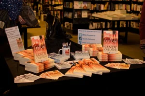 - I didn’t want to deter those who wanted their books signed on the night so I also had a pile of unsigned books next to the till, and an obvious signing table was set up adjacent to the counter. The plan worked, and as a result I enjoyed the evening far more than the first launch, having more opportunity to mingle with my guests.