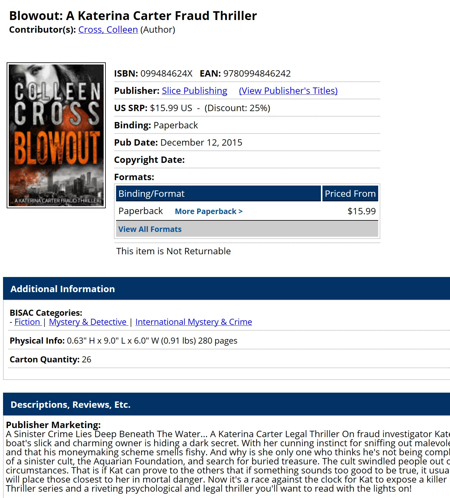 I prefer non-returnable, too, but despite my best efforts, iPage is not picking up my changes in Ingram LSI. I’ve submitted my 3rd (or is it 4th?) email about the issue.