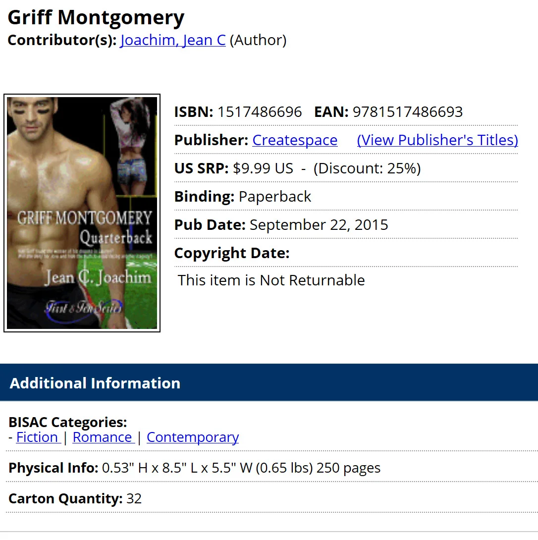 You can achieve the same results by listing directly on Ingram, making your books indistinguishable from any traditional publisher. There’s no mention of POD. In fact, there’s even a pseudo-inventory amount on the far right (off picture) so that the bookseller doesn’t have to worry about availability (a non-issue for POD).