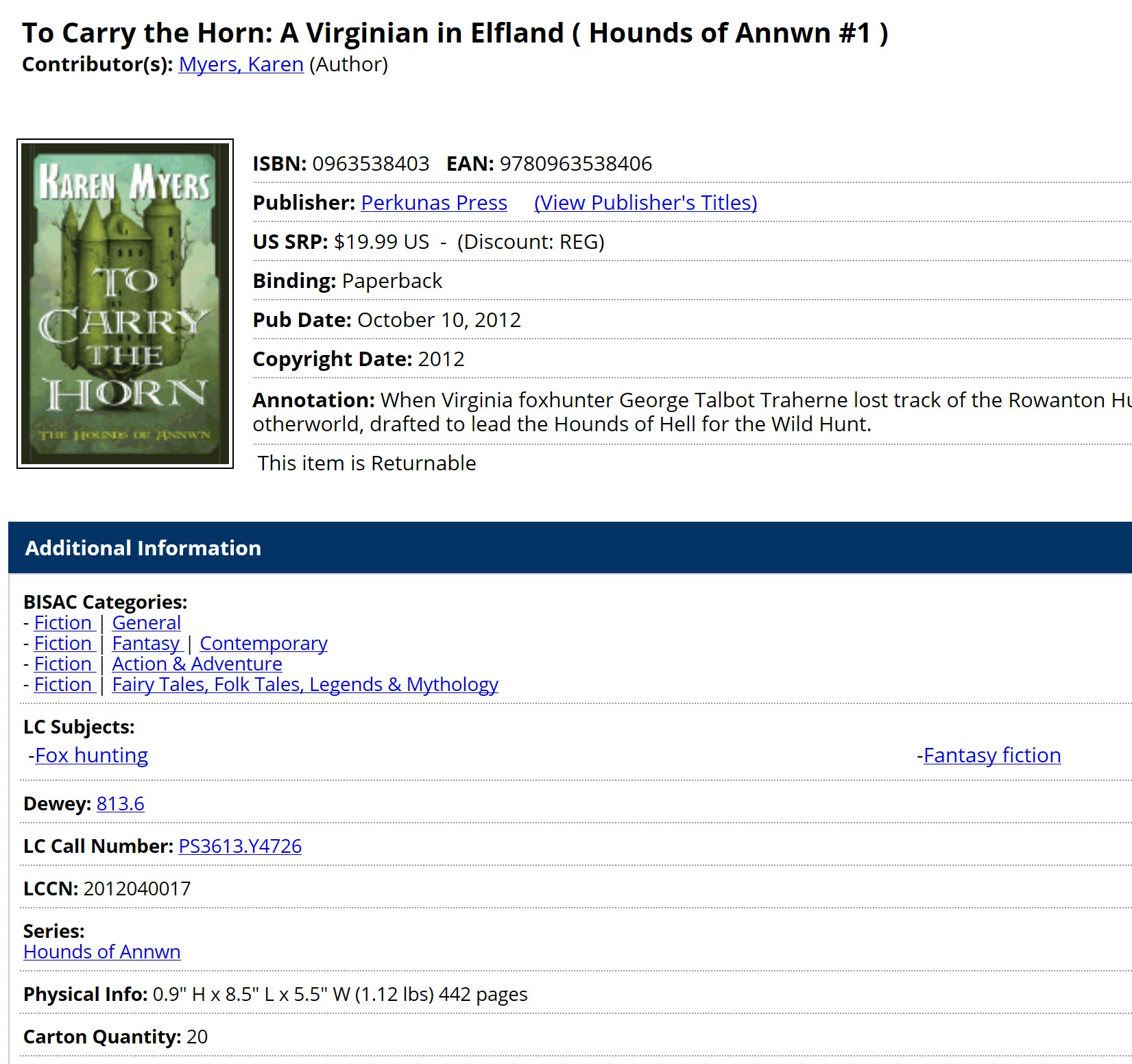 C) Publisher name (clickable) – useful for small presses to see what else is available)