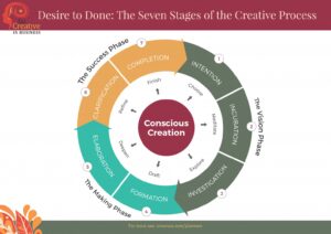 As creatives, we can use our knowledge of the process to accurately pinpoint where we are meeting creative resistance and block. We can clearly see how the process is ignited and sustained through the seven stages of the process by directed passion.