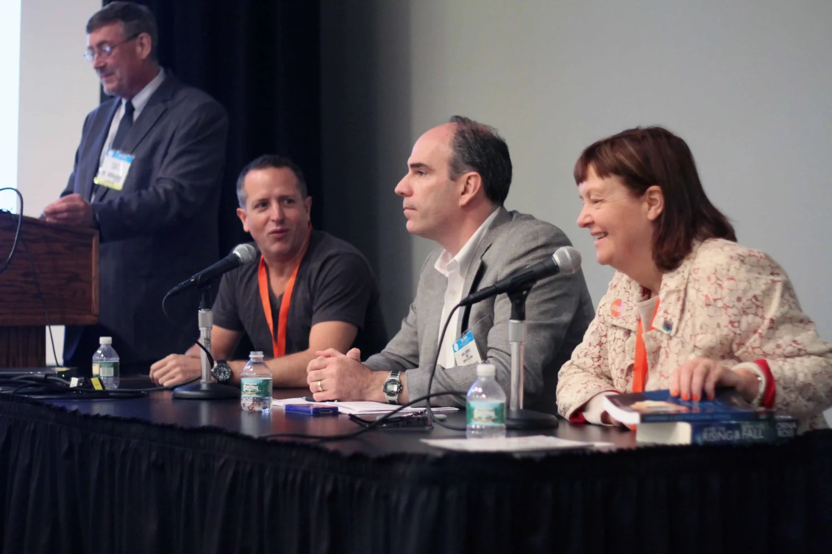 Steven Spatz, Hugh Howey, Mark Lefebvre, Orna Ross (l. to r.) at Choosing Your Publishing Pathway Panel, UPublishU Conference, BEA 2014