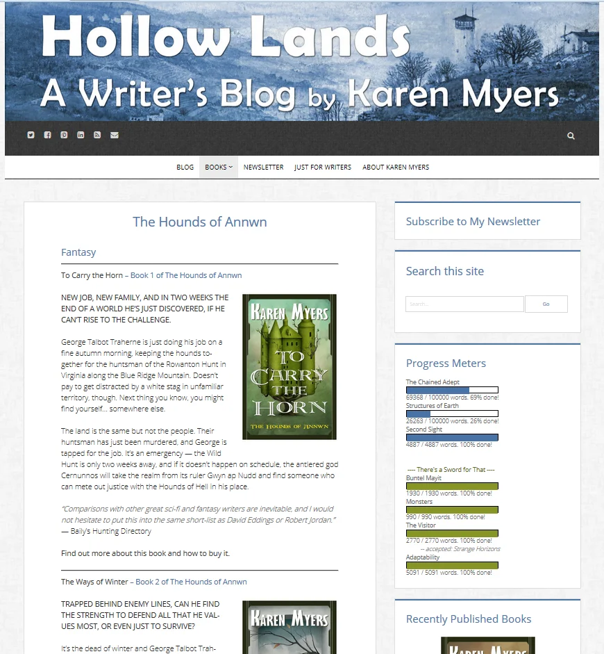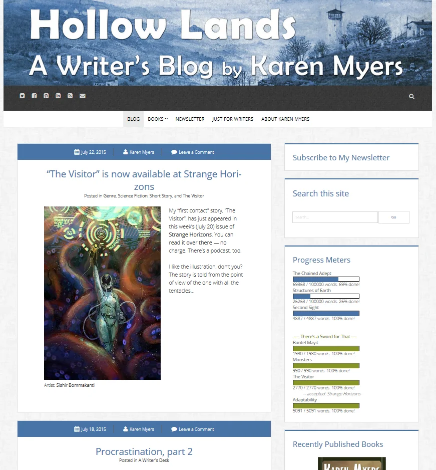 What do readers care about? Well, I can tell you what they don’t care about — the issue of independent author publishing vs traditional publishing. There is absolutely no point in making that part of your website’s message. I’m proud of being an indie, but why would I expect my readers to know or care about that? Be a professional, and look like one. Your Author site should be an indicator of quality, even if all you’ve published so far is one short story. Professional author websites have two things: information about their books, and links to their publisher. They might also have links to retailers and a blog and contact information, but not necessarily.