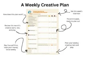- Incorporates creative rest and play into your weekly plans as well as creative work.