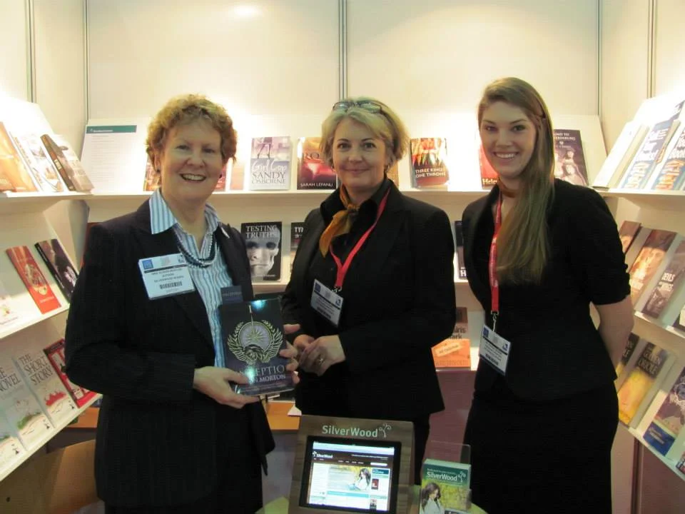 At the London Book Fair 2013, SilverWood Books' Helen Hart (centre) with colleague Jo Zefron (right) and ALLi author member Alison Morton (left) and