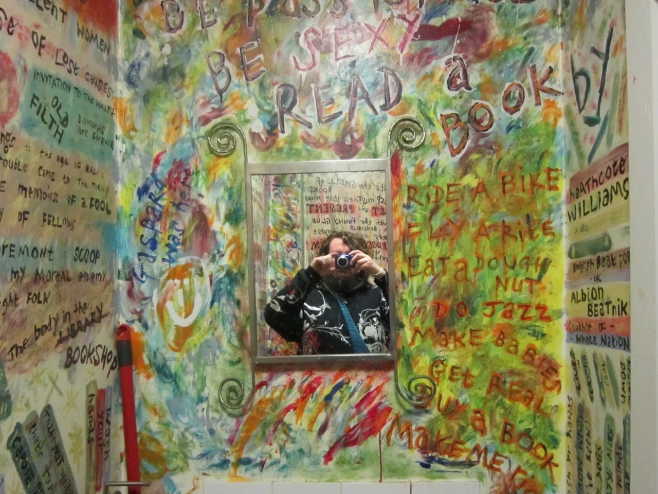 I love this epitome of indieness - the bathroom at the Albion Beatnik Bookstore in Oxford, complete with hand-painted poetry. But if it gets "indexed", who will own the indexing rights, and who will get paid for them and how?