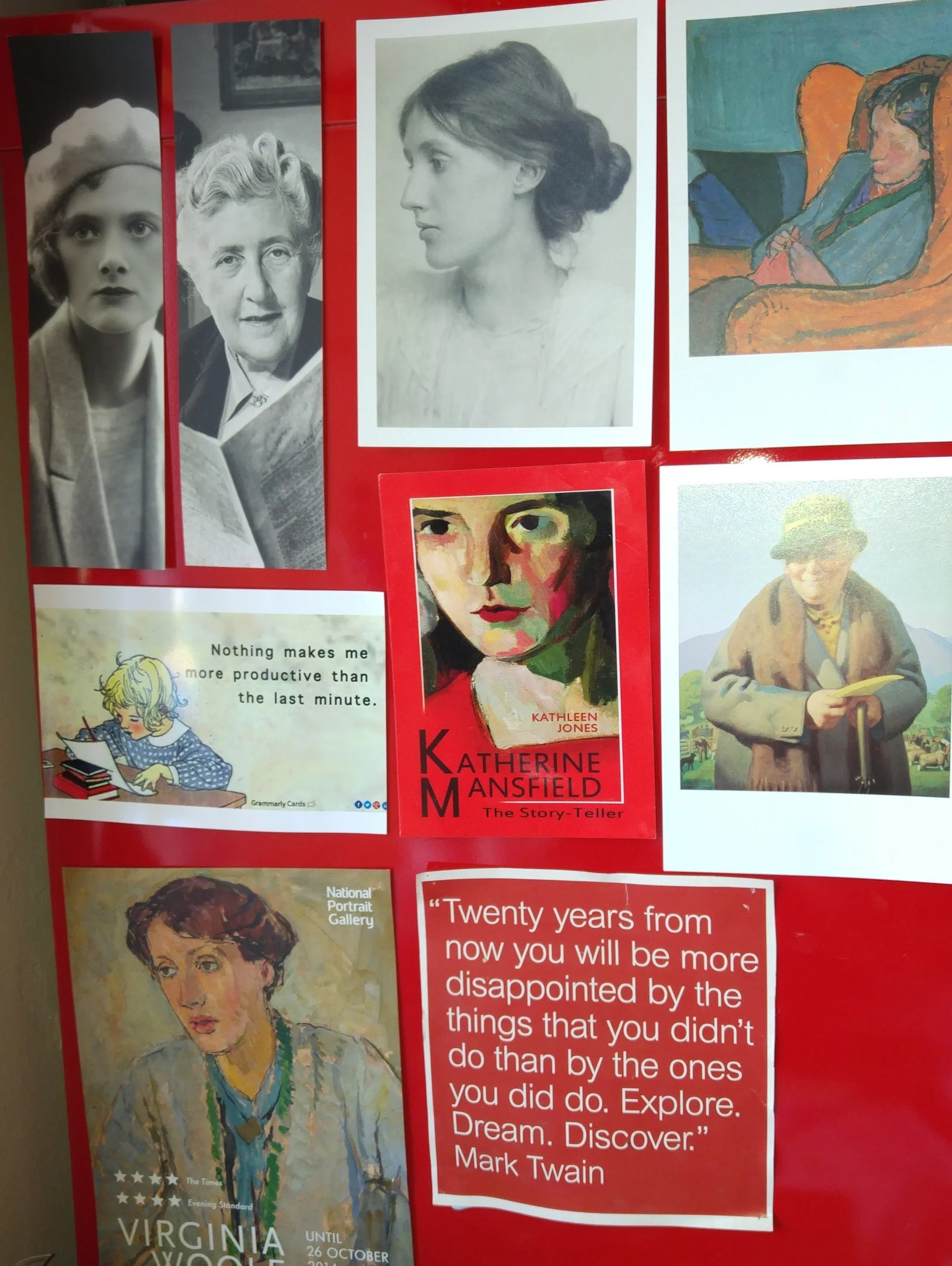As you'll notice, underneath all of these pictures is a quote by another writing hero, Mark Twain, plus an anonymous line about procrastination, which serves as a reminder to stop dreaming and start doing – sound advice for any author at any stage of their career.