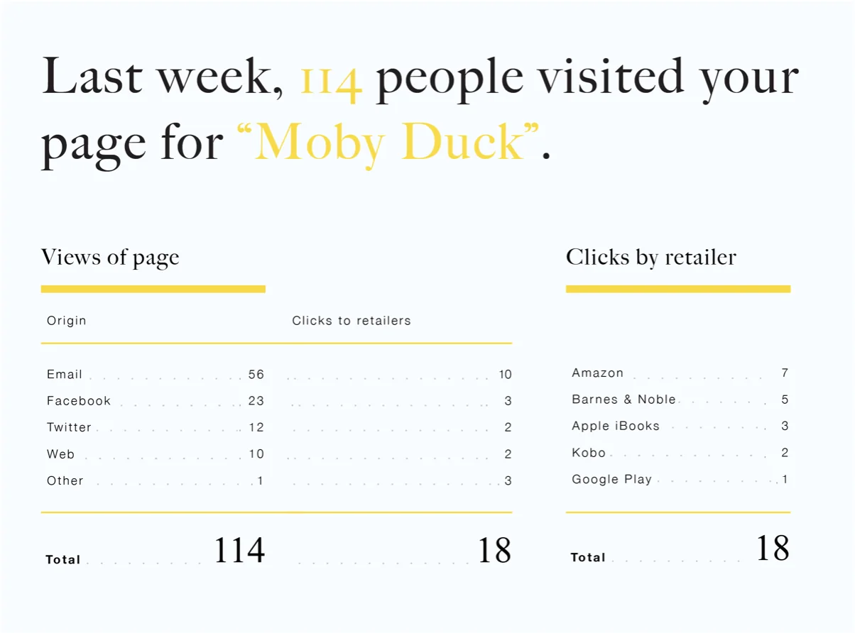 Pronoun is a free publishing platform created to empower independent authors. In addition to offering easy ebook conversion and widespread distribution, Pronoun tracks more than 6 million books every day, using our data to help authors best promote and position their books. With Pronoun's data- and analytics-driven publishing tools, you can: