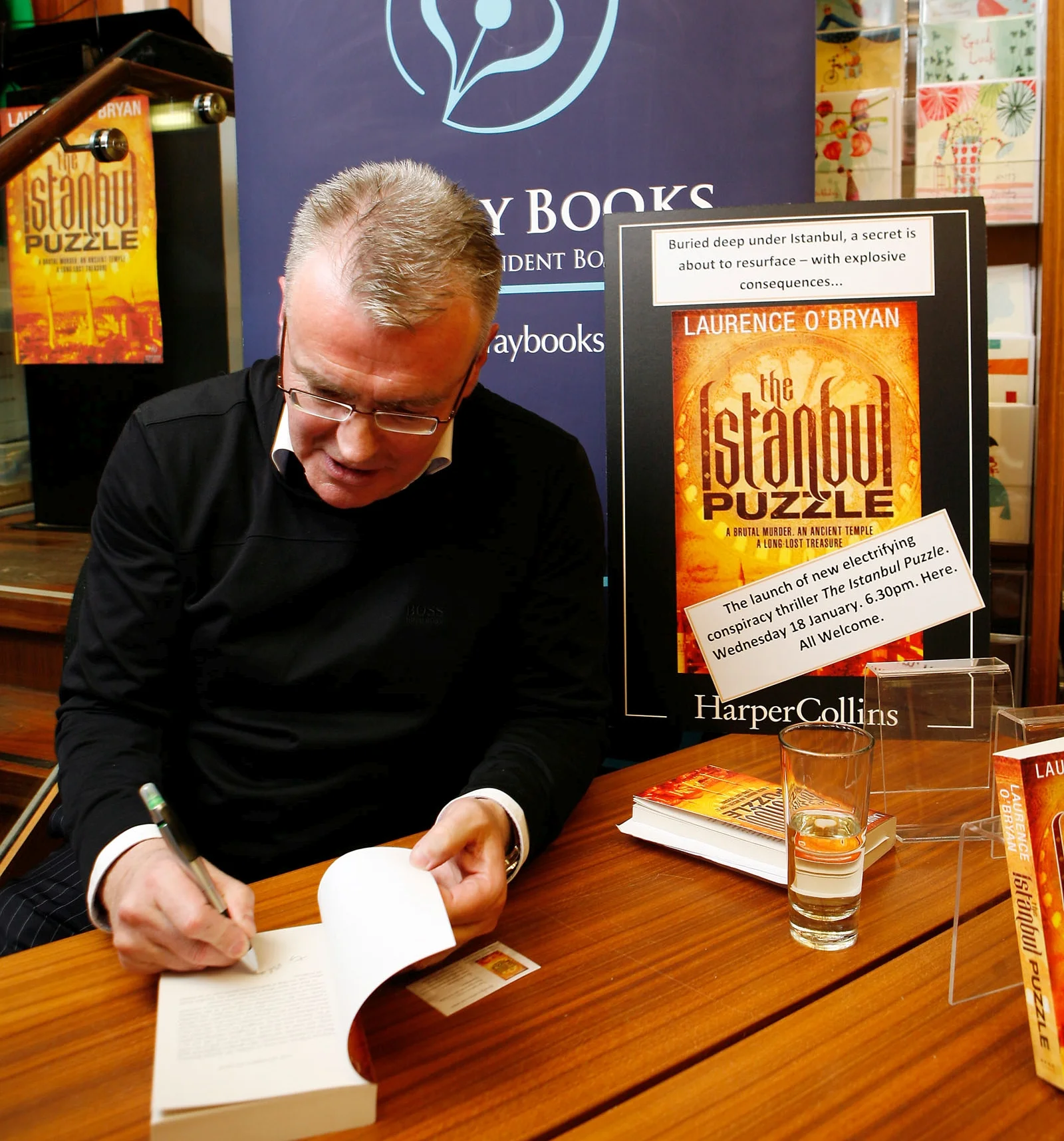 Laurence O'Bryan at the launch of his thriller “The Istanbul Puzzle” in Dubray Bookstore on Grafton Street, Dublin ( Photo byNic Mac Innes)
