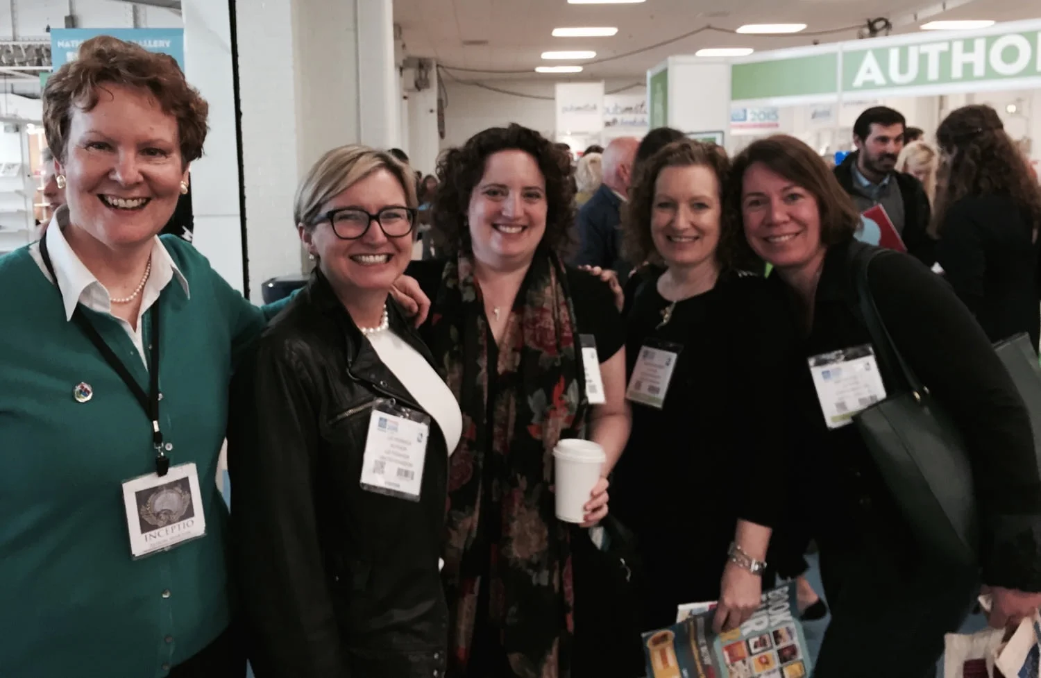 With RNA friends, Alison Morton and Liz Fenwick, Fiona Harper, Sue Moorcroft and Brigid Coady at the London Book Fair