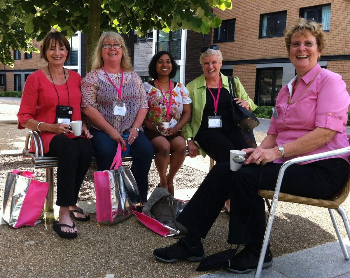 Now part of the RNA furniture – Alison Morton (right) with fellow authors Liz Harris, Janet Gover, Rhoda Baxter and Maggie Gee at the RNA annual conference in 2013